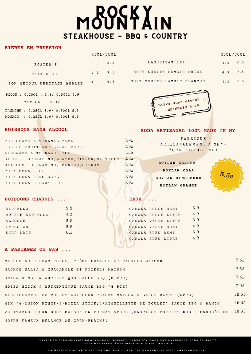 Moreover, the service is commendable—efficient and friendly, creating an enjoyable dining experience. With favorable quality-to-price ratios and a great selection of beverages, including an excellent coffee to wrap up your meal, Rocky Mountain Abreschviller stands out as a culinary gem worth discovering!